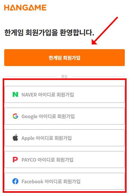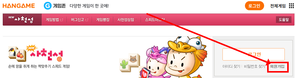 - 한게임 계정이 없을 경우 간편 가입 가능