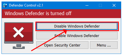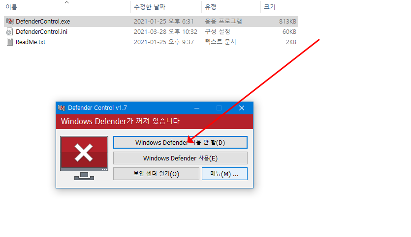 - Defender Control은 무설치로 간편하게 디펜더를 끌 수 있는 프로그램